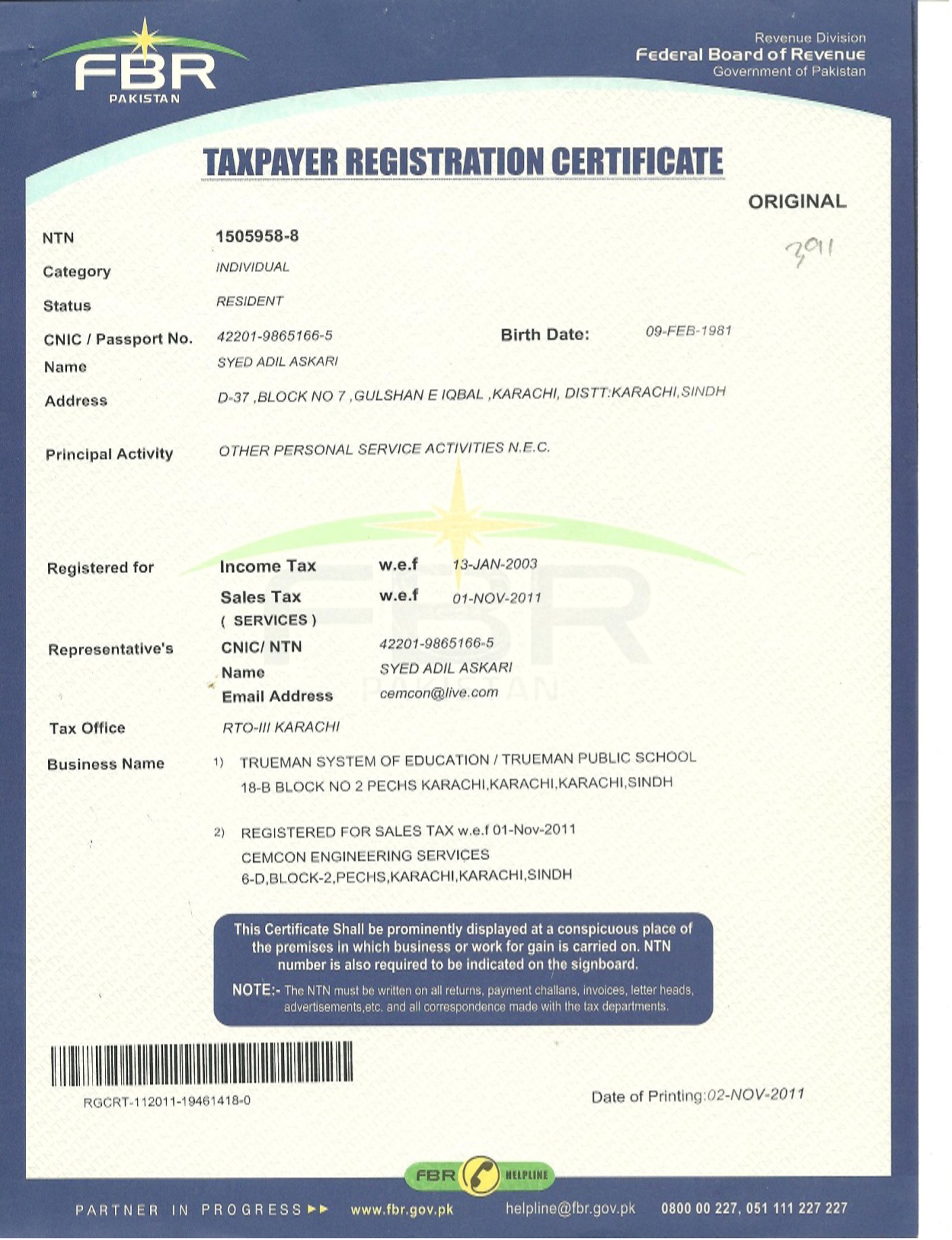 LEGAL REGISTRATION & TAX CERTIFICATION
